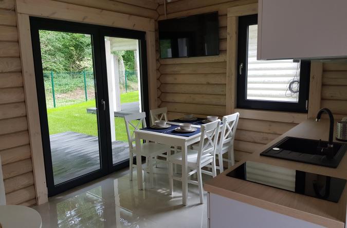 Oferujemy Państwu nowe komfortowe apartamenty/domy z bala syberyjskiego, na parterze salon z pełnym aneksem kuchennym lodówka, zmywarka, płyta indukcyjna w salonie wypoczynek, stolik kawowy, stół obiadowy z krzesłami, telewizor , łazienka na piętrze sypialnia z łóżkiem małżenskim oraz druga sypialnia z dwoma łózkami pojedyńczymi ponadto duży taras z wypoczynkiem oraz dostęp do internetu.